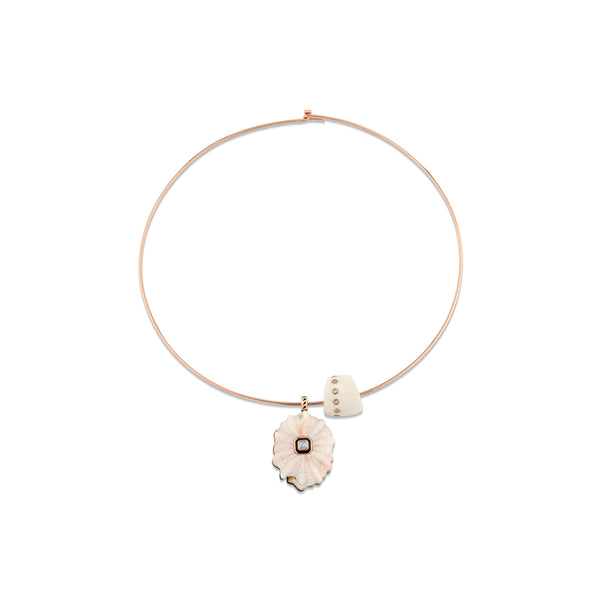 Elevate your collection with this timeless Classic Natural Shell Bead by Dezso. Crafted from an organic shell form and hand-set with five sparkling round diamonds in 18k gold bezels, this pendant evokes seaside luxury with a soulful edge. A sculptural silhouette designed to shine solo or layered, this piece captures the magic of nature's raw beauty and refined design.