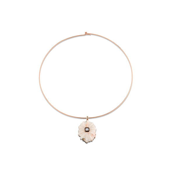 Finished in 18K rose gold, this piece embodies the essence of Dezso—where elemental forms meet refined craftsmanship. Perfect on a sleek chain or silk cord, it’s a quietly powerful statement of natural beauty and artisanal detail.