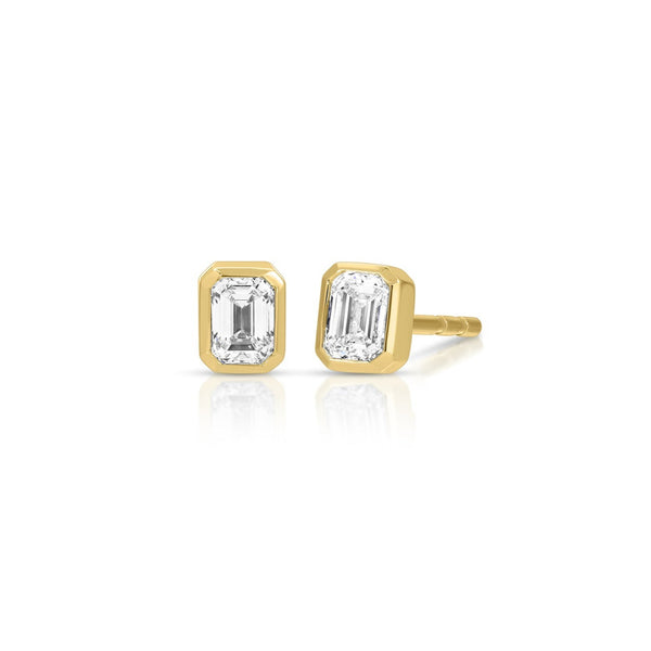 Bezel Set Emerald Cut Diamond Stud Gold Earring - Single