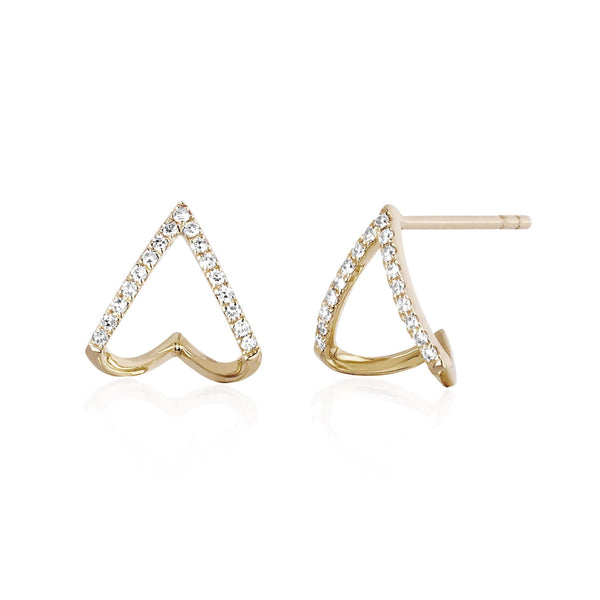 The Diamond Chevron Huggie Earrings sparkle with .11 carats of diamond outlining the tip of the chevron shape. Designed to add subtle sparkle, these studs know how to work their angles.