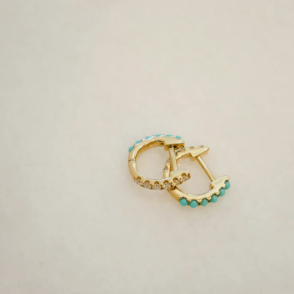 The Reversible Diamond & Turquoise Mini Huggie Earring by EF Collection proves that simplicity is always chic. Featuring diamonds along the front side and cabochon turquoise along the back, this huggie can be worn both ways depending on the way you place the post. We’d call that jewelry magic.