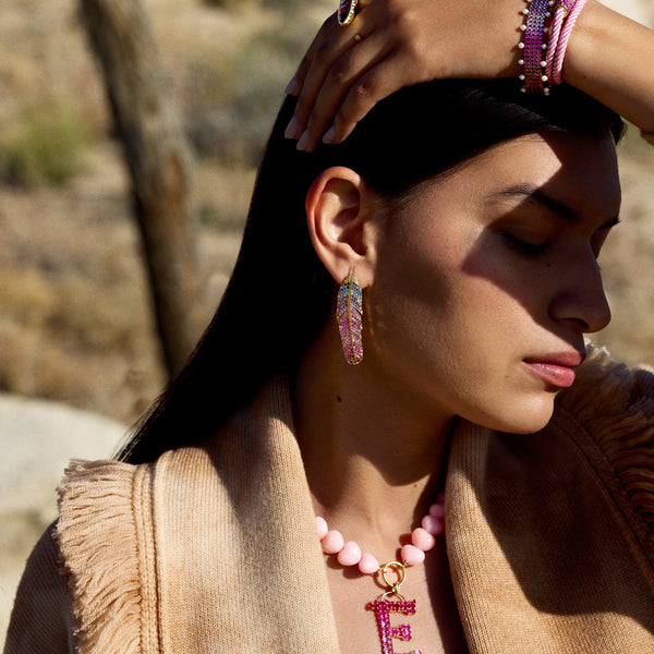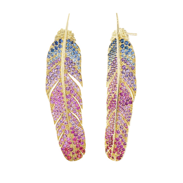 The Feather Sapphire Earrings are Emily P Wheeler's newest oversized stud. Emily took inspiration from tropic birds and fish for the ombre palette of these feather earrings. These earrings are flattering on a variety of ears.