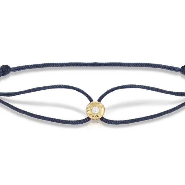 From our capsule Nesting Gem Collection, rich 18k yellow gold surrounds a diamond. Each bezel is finished by hand in the Octavia Elizabeth signature hammer finish. The Parachute Bracelet is adjustable and when open, the size fits most.