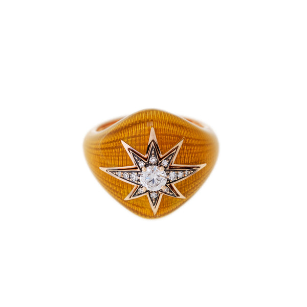 Jo’s Note: A flash of golden enamel kissed with diamonds—I love how this ring feels like wearing a sunburst of joy on your hand.