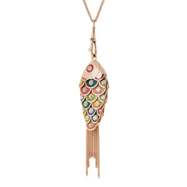 Jo’s Note: A breathtaking talisman of color and brilliance—this fish pendant is both playful and powerful, meant to make waves wherever it’s worn.