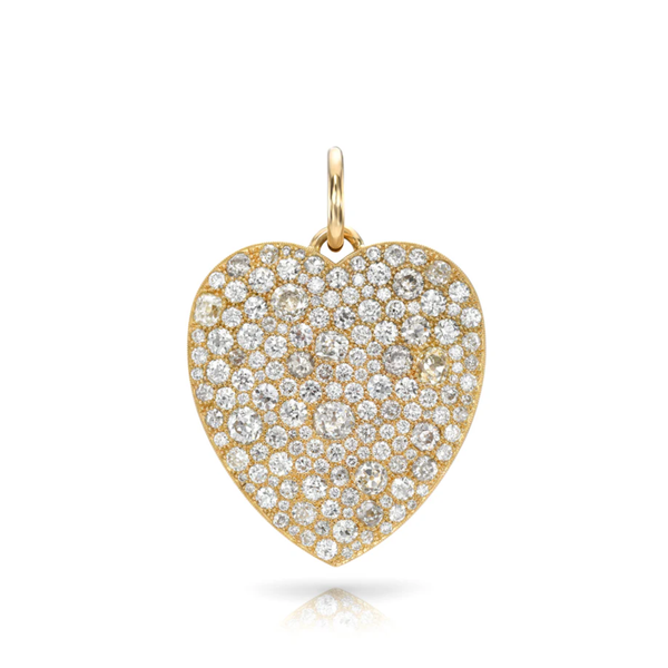 Single Stone celebrates antique diamond artistry with the XL Cobble Heart — a bold expression of love crafted entirely in heirloom-quality stones. This pendant features an extraordinary 11.16 carats of hand-selected old European, old mine, and round brilliant cut diamonds, each chosen for its individuality and luminous fire, all set in rich 18K yellow gold. The cobblestone-style pavé brings dimension and legacy into every facet, making this a treasure to be passed down for generations.