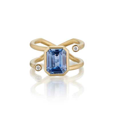 - Gemstones: Aquamarine base, heart-shaped Blue Sapphires