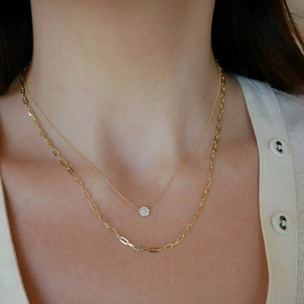 The EF Collection Full Cut Diamond Disc Choker Necklace radiates refined sparkle with a prong-set diamond pendant centered on a bold gold chain. Perfect as the base of a layered look or chic on its own, this necklace is a modern heirloom in the making—striking, versatile, and destined for daily wear.