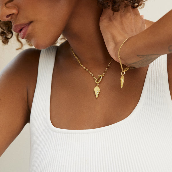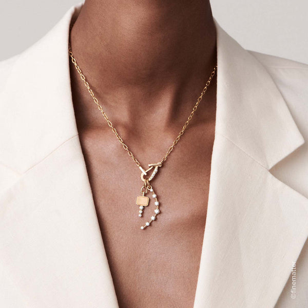 The Mini Diamond Lola Necklace by Jade Trau is a refined expression of effortless elegance—designed to feel like a natural extension of your own style. Crafted in 18K yellow gold and set with 0.09 carats of brilliant diamonds, this necklace embodies the understated luxury that defines Jade’s signature aesthetic. Light, graceful, and designed for layering, the Lola sits beautifully along the collarbone, adding a subtle shimmer that elevates every look from day to evening.