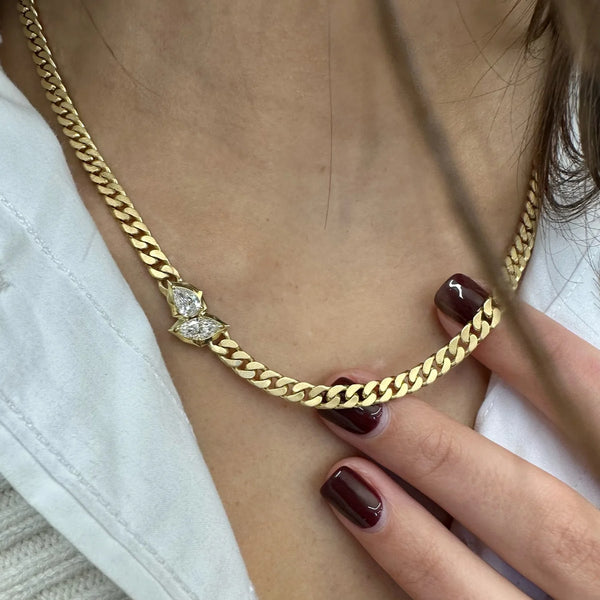 The Poppy Curb Chain Necklace is a vintage-inspired piece that is basically with anything for any occasion. 16 Inch of chain handcrafted in solid 18-karat gold and featuring 0.40tcw of diamonds, in our Poppy floral motif. The Poppy Curb Chain Necklace is made with our signature satin finish making every diamond pop. The Poppy Curb Chain Necklace comes with a matching chain extender that adds 2 inches of length for a total of 16 inches.