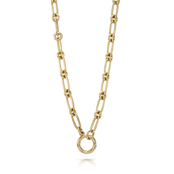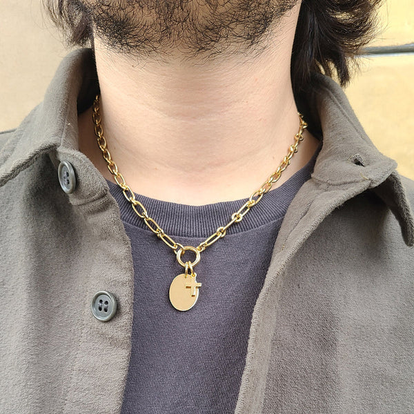 Designed as the perfect foundation for personal storytelling, the Single Stone Lo Annex Necklace features an 18K gold elongated link chain ending in a refined charm holder. Its minimalist silhouette makes it effortless on its own while giving every pendant you add a curated, intentional feel.