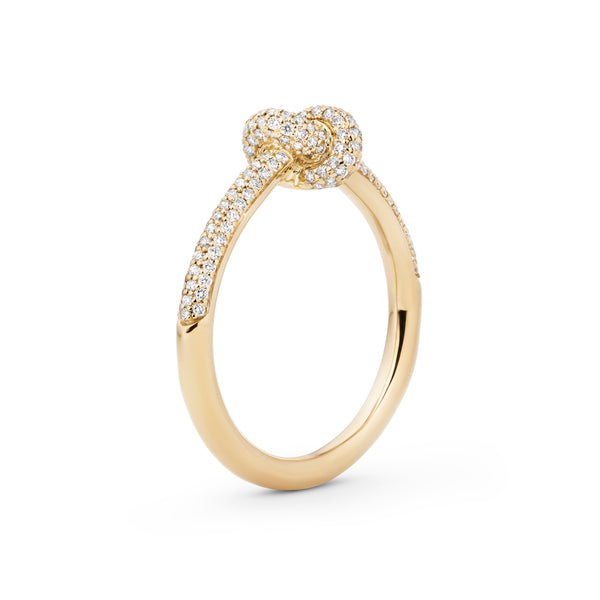 Engelbert 1920’s Legacy Knot Ring Mini in yellow gold with white diamonds captures the elegance of enduring connection in its most delicate form. This refined silhouette celebrates life’s subtle gestures—where meaning is whispered through craftsmanship, not shouted. The pavé knot symbolizes unity, love, and the continuity of personal legacy, making it a timeless heirloom in the making.