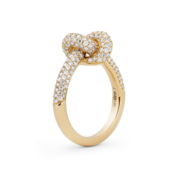 Engelbert 1920’s Legacy Knot Ring celebrates the beauty of unbreakable bonds. Hand-set pavé diamonds wrap fluidly around sculpted yellow gold, forming a graceful knot that represents continuity, strength, and devotion. A modern icon with old-world soul.
