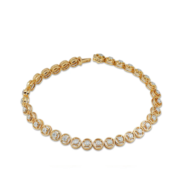The Kavant & Sharart Mingle Petite Eternity Diamond Tennis Bracelet redefines classic luxury through modern artistry and sculptural design. Handcrafted in 18K yellow gold, this fully articulated bracelet features bezel-set diamonds that shimmer with fluid elegance—perfectly balancing timeless sophistication and everyday wearability.