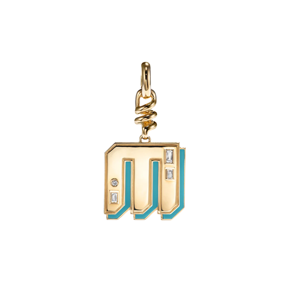 Boochier brings playful nostalgia and bold personalization together with this Turquoise Letter Charm, framed in yellow gold and finished with diamond accents. Inspired by retro charm and modern self expression, this piece turns a single letter into something joyful, meaningful, and unmistakably cool.