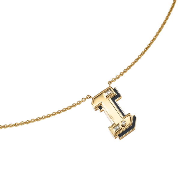 Boochier brings bold nostalgia to fine jewelry with this Onyx Letter Necklace, blending graphic gold lines, inky black onyx, and diamond accents into a piece that feels personal and powerful. Inspired by playful retro design, it is confident, expressive, and made to tell your story your way.