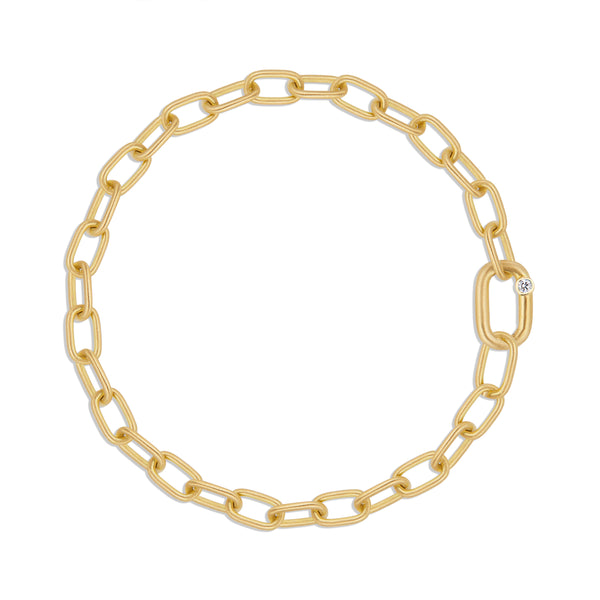The Thor(vi) Chain Link Bracelet is crafted using the same handmade custom satin 18K yellow gold chain as the Thor(vi) Chain Link Necklace. These solid links form a strong chain that can even be added into the sibling chain necklace as an extension. The completely removable clasp can be utilized in creating a “Y” necklace or be used as the clasp for beaded strands.