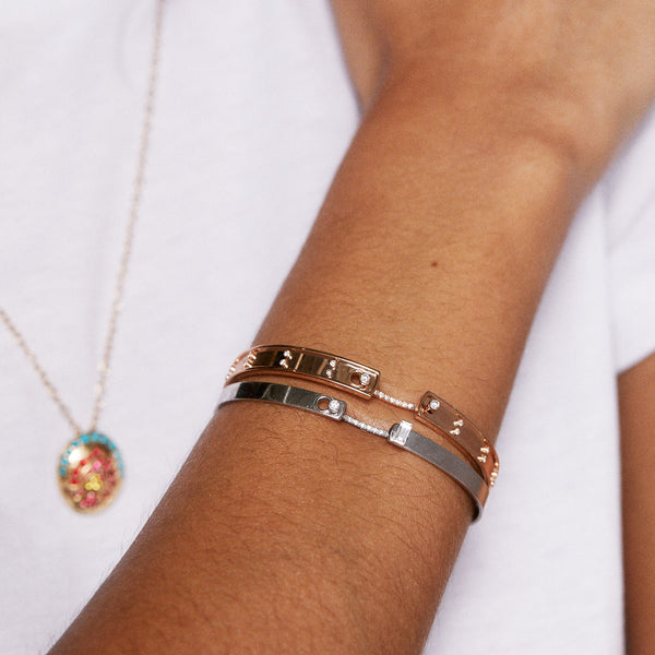 Inspired by the architectural details of Paris's most renowned monument, the Picnic in Paris Mood bracelet is crafted in 18k gold to the highest standards of French savoir-faire. It artfully reinterprets the monument's distinctive lines and bolts, transforming them into gold accents embellished with brilliant-cut diamonds.
