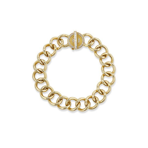 Handcrafted from 18k yellow gold with 0.55 cttw G-HSI diamonds. Size 6"