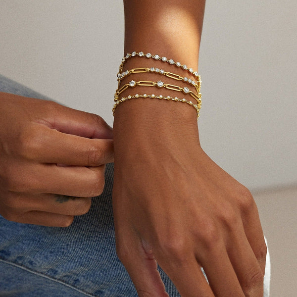 This bracelet is effortlessly chic—bold in design yet soft in its diamond glow. It’s the bracelet that makes every stack feel instantly complete.