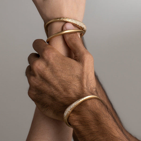 Jo's Note: Champagne diamonds cascade across gold in a cuff that’s both powerful and poetic—meant to be worn, stacked, and passed down.