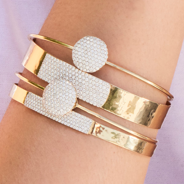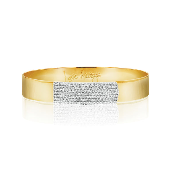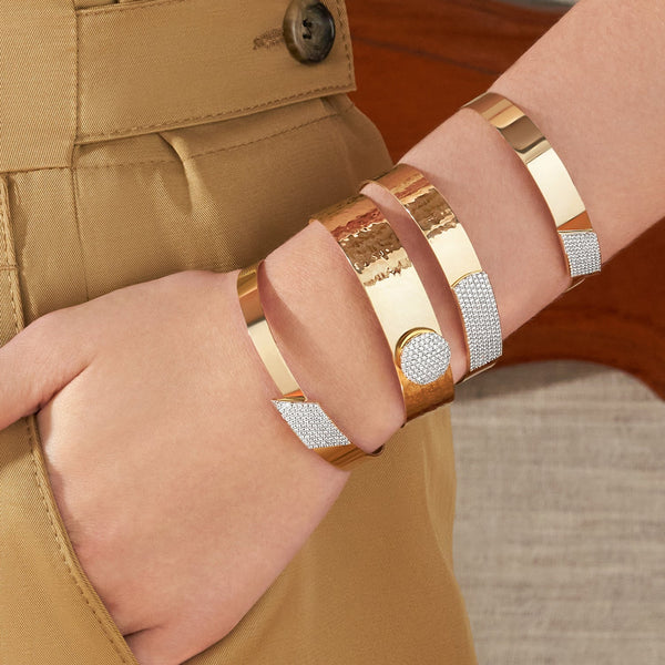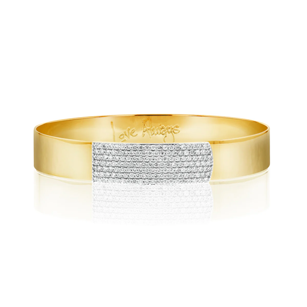Phillips House’s Affair Medium Strap Bracelet blends bold elegance with everyday ease. Crafted in 14K gold, this eye-catching design showcases a sleek polished surface accented with a bar of sparkling pavé diamonds. Comfortable and versatile, it’s a statement piece you’ll never want to take off.