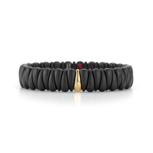 From the Demeglio collection, this sleek black matte ceramic bracelet is designed with claw-shaped links and accented by a polished 18K yellow gold element. Handcrafted in Italy, the flexible stretch design offers both comfort and contemporary elegance, making it the perfect everyday statement piece.