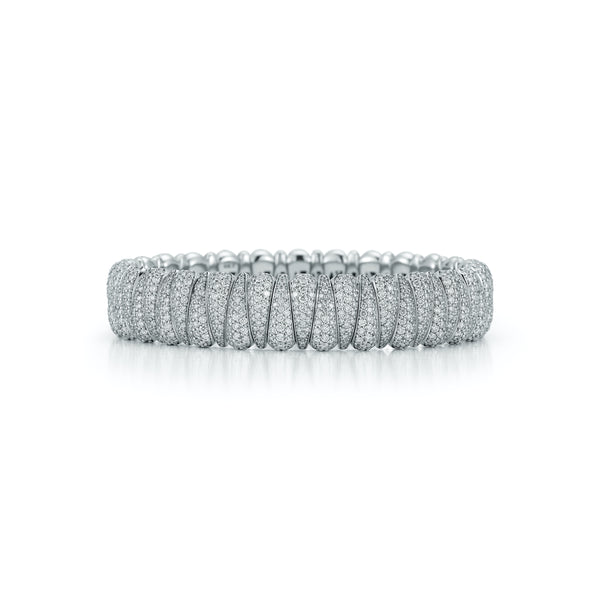 From the Demeglio collection, this refined bracelet brings together the brilliance of diamonds with the comfort of Italian design. Crafted in 18K white gold, it is fully set with sparkling round brilliant-cut diamonds of FG color and VS2/SI1 clarity, radiating elegance from every angle. Featuring Demeglio’s signature flexible stretch construction, this bracelet moves effortlessly with you—making it as wearable as it is luxurious. A modern essential that elevates both day and evening style.