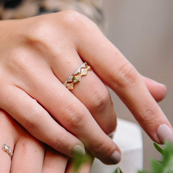 The Clara Band interlocks seamlessly with other stacking bands like the Kismet Band and the Mabel Band for an everyday, easy to wear look.