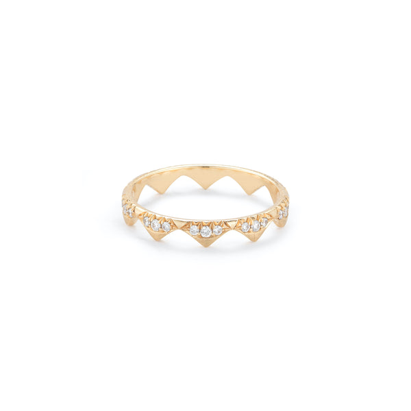 The perfect companion ring, the Clara Band was designed to be worn with other Jade Trau pieces and is frequently featured in our signature stacks. Handcrafted in 18-karat gold with a .19 total carat weight of diamonds, the Clara Band's triangular silhouette provides a modern alternative for traditional stacking rings.