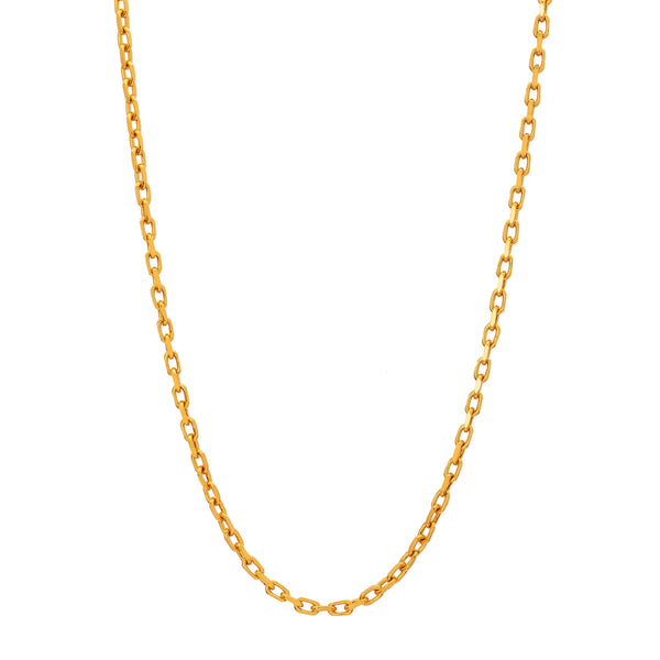 Your chain game, leveled up. The Buddha Mama 16-inch Diamond Cut Cable Chain in 20K yellow gold is the essential foundation piece. Its 2.65mm diamond-cut links catch the light with every move, while the lobster clasp ensures a secure, luxe fit.