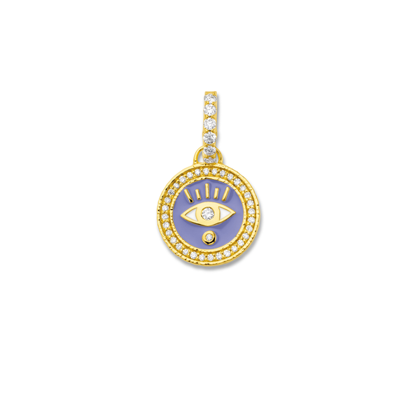 Buddha Mama infuses celestial calm into this periwinkle enamel evil eye pendant, symbolizing inner peace and divine intuition. Cast in 20K yellow gold with 0.36 carats of diamonds, it’s a talisman of serenity with a high-fashion edge—made for spiritual sophisticates who lead with grace and strength.