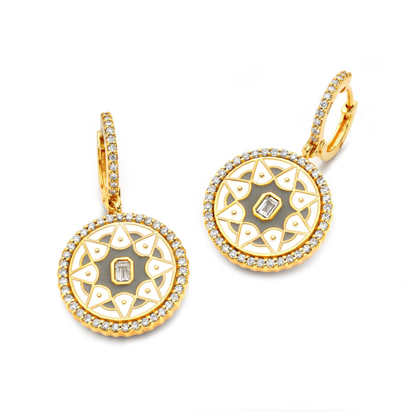 Bring subtle sophistication to your everyday look with Buddha Mama’s Mandala Coin Huggie Earrings. Crafted in 20K yellow gold with grey and white enamel, these huggies feature diamond-set mandala coins that sway gently with each movement — a perfect blend of spiritual symbolism and wearable glamour.