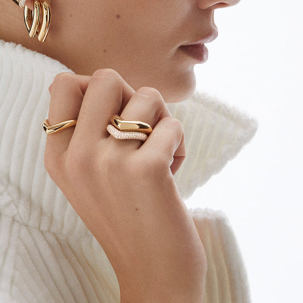 The Engelbert 1920 Drop Link Earrings, Medium, are crafted in luminous 18K yellow gold and adorned with full pavé white diamonds, forming a modern yet timeless silhouette. A reimagining of the classic hoop, their sculptural drop shape catches light from every angle—bold yet refined, effortlessly transitional from day to evening.