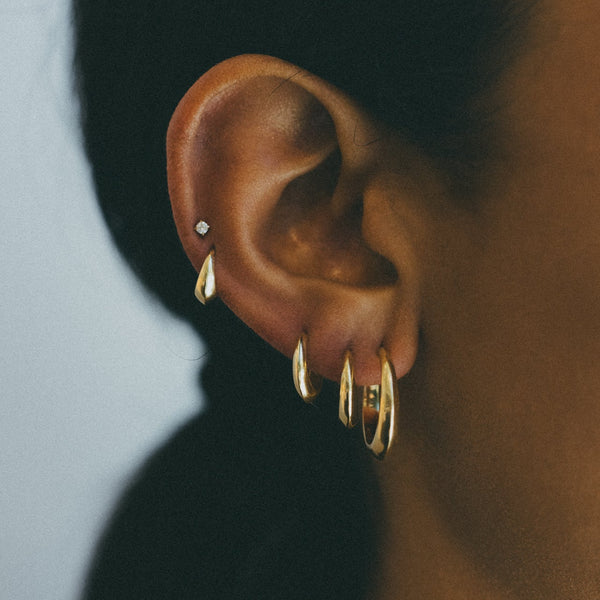 These are the kind of hoops you reach for without thinking. Clean lines, perfect scale, and just enough edge to feel finished every time you put them on.