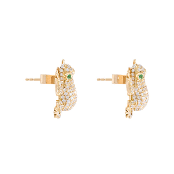 Celebrating the enchanting spirit of the rainforest, the Amazonica Frog Earrings by Nelly Rojas are crafted in 18K yellow gold. Their sculptural forms are pavéd with 1.7 carats of diamonds, emerald accents, and ruby eyes (0.09 cts), symbolizing healing, renewal, and abundance. A mystical treasure that bridges high jewelry with the magic of nature.