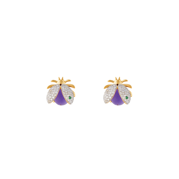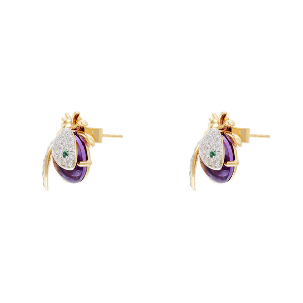 Nelly Rojas transforms the natural grace of a ladybug into wearable art with the Mini Catarina Earrings. Crafted in 18K gold, the wings shimmer with SI2-grade diamonds and rhodium detailing, while the body glows with 1.56 carats of amethyst—symbolizing peace and spiritual clarity.