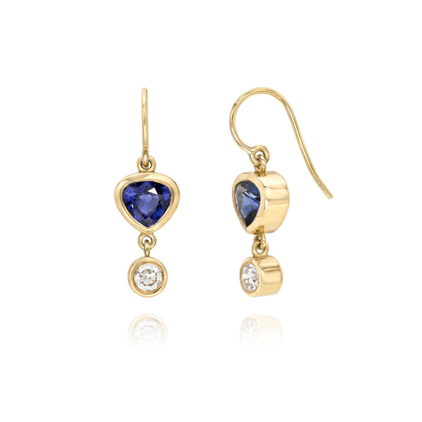 Single Stone celebrates the romance of antique stones with modern artistry in this pair of sapphire and diamond drop earrings, crafted as a future heirloom with soulful presence and historic charm.
