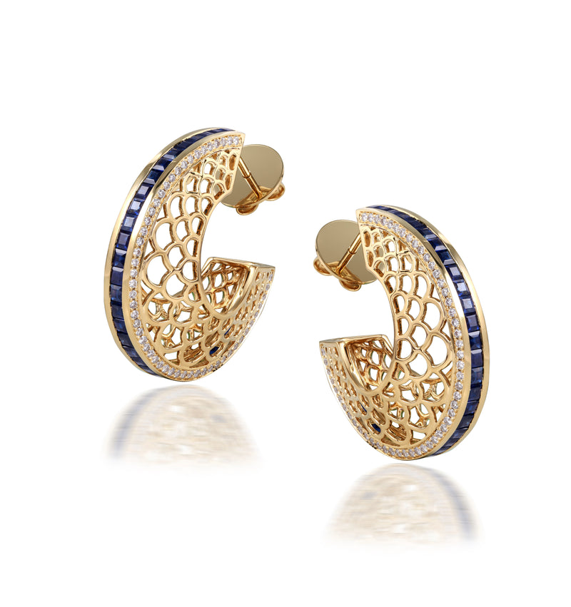 Jodhpur Scalloped Large Hoop Earrings - Sapphire