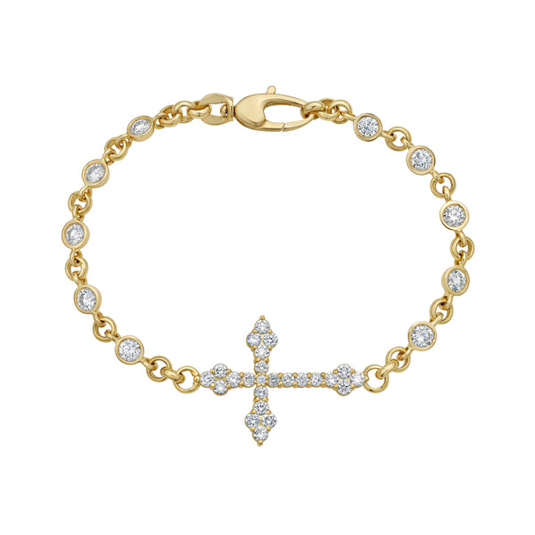 The Diamond Cross Charm Bracelet from Lionheart blends timeless symbolism with modern strength, crafted as a refined statement that feels deeply personal and effortlessly wearable. Set in yellow gold with a diamond cross centerpiece and bezel-set diamond stations, this bracelet brings a subtle Western spirit and heirloom sensibility that layers beautifully into a rodeo-inspired, everyday luxury look.