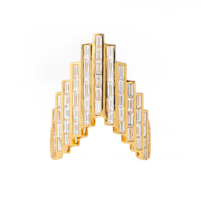 The Satine Rounded Cushion Bangle from Maison H Jewels brings a modern, sculpted elegance to the wrist with its smooth gold silhouette and vivid red tourmaline centerpiece. The design balances clean lines with a rich pop of color, creating a piece that feels refined, warm, and effortlessly wearable.
