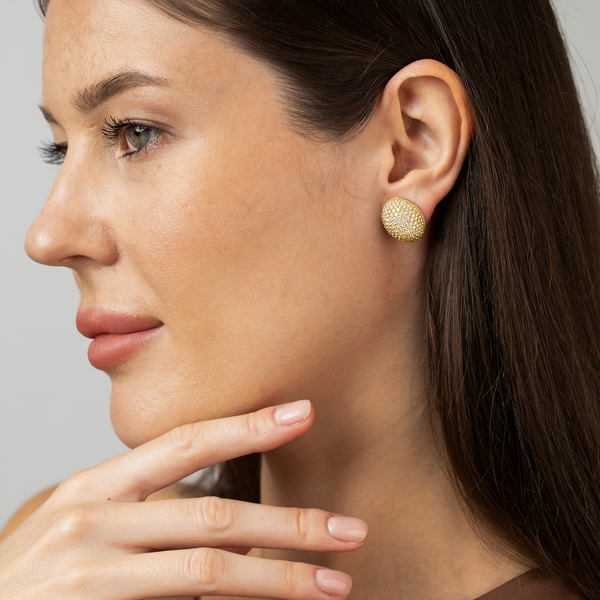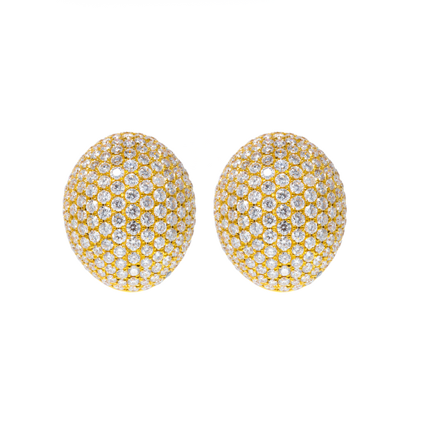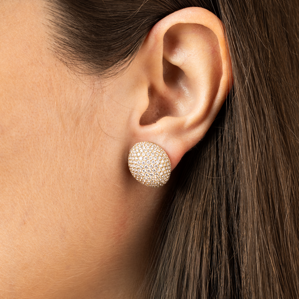 Inspired by the fluid beauty of natural forms, these sculptural earrings from Maison H Jewels make a bold yet timeless statement. Crafted in 18k yellow gold and fully pavé-set with brilliant white diamonds, their dome silhouette captures light from every angle—offering both softness and structure in one elegant gesture. They’re wearable works of art.