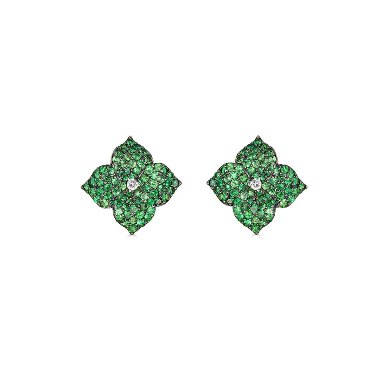 Fiore Large Flower Earrings - Green Tsavorite