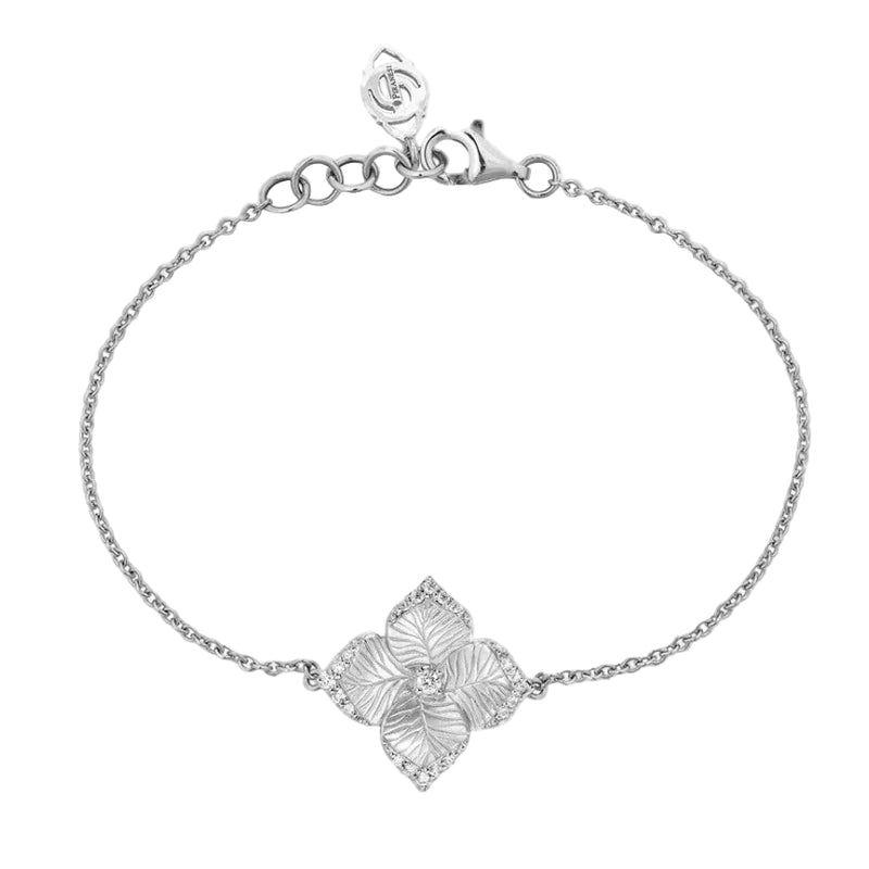 Fiore Small Flower Satin Bracelet - White Gold