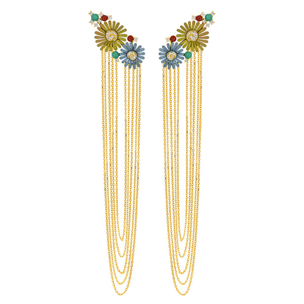 - Style: Multi-Chain Fringe Drops with Titanium Flowers and Natural Beads
