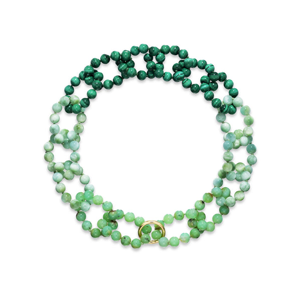 Anna Maccieri Rossi’s Green Beaded Maxi Night & Day Necklace is a striking strand of richly toned green stones designed to move seamlessly from everyday wear to elevated moments. Anchored with 18K yellow gold, this piece brings depth, color, and organic luxury to layered looks or stands confidently on its own.