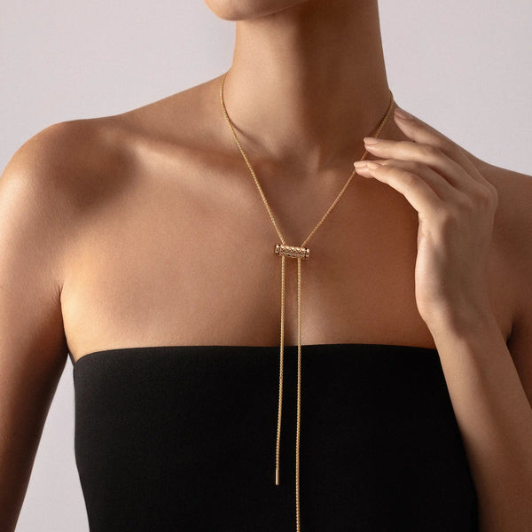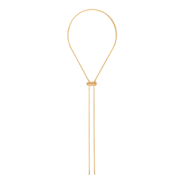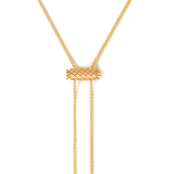 French savoir-faire embraces street style in the Latch collection. Each pendant intertwines delicate details with a modern edge. This gold pendant introduces a unique design twist: pinch the sides, slide into place on a Latch chain, and release to secure. Versatile, this pendant compliments the various chains of the collection.