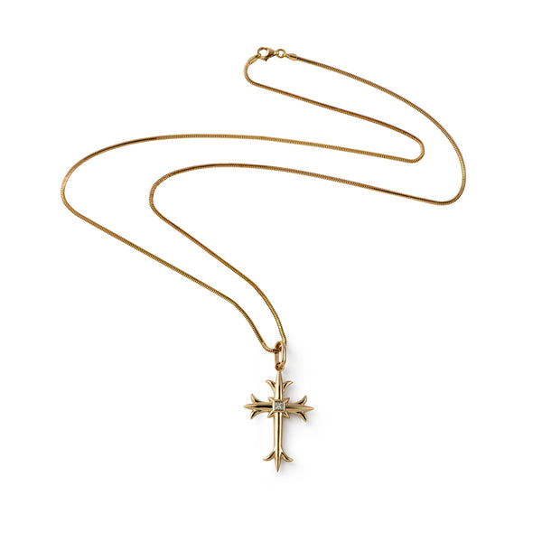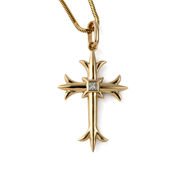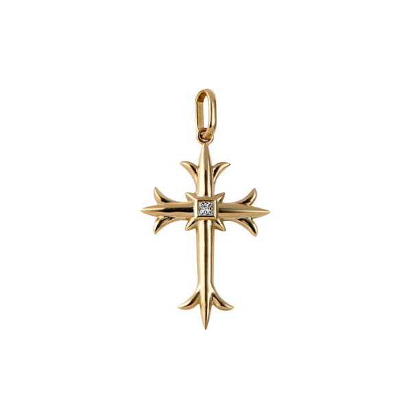 Maria Kotsoni reimagines sacred geometry with the Trillium Cross, an expression of divine symmetry and symbolic protection. Set in 18K gold and centered with a VVS diamond, it’s a modern spiritual talisman infused with elegance and meaning.