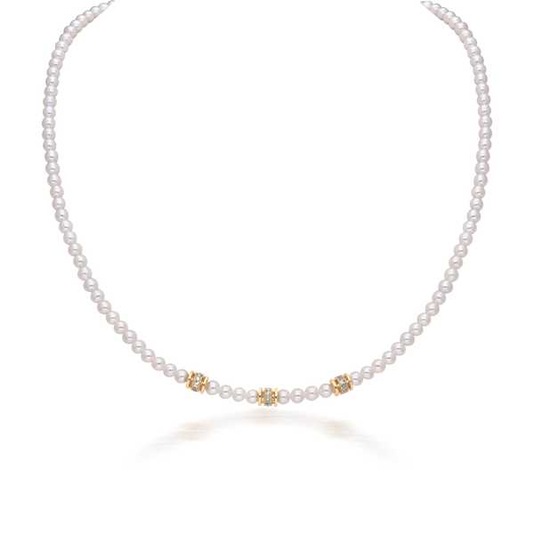 The Moksh Kyoto Diamond and Pearl Necklace is a celebration of light, purity, and the power of simplicity. Freshwater pearls are strung with intention, accented by diamond-set gold elements that add subtle brilliance without overpowering the serenity of the design. It is the essence of effortless elegance—quiet yet unforgettable.