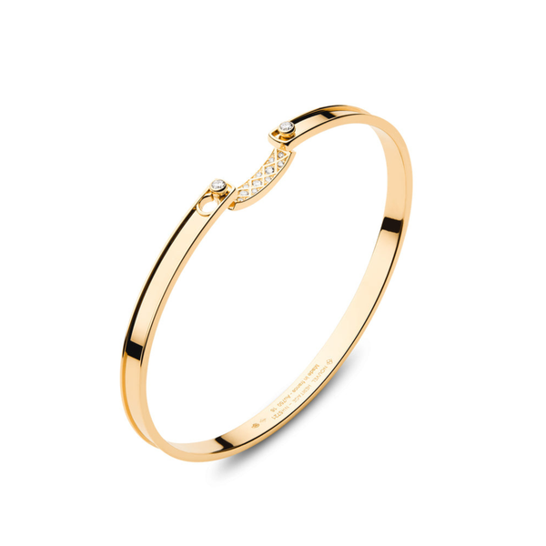 The Nouvel Heritage Parisian Stroll Mood Bangle celebrates the beauty found in life's quiet details. Crafted in 18K recycled yellow gold, its 4mm silhouette features 0.15 carats of G-color, VS-clarity diamonds that trace a pattern reminiscent of sunlit Parisian pavements. Elegant and contemplative, it embodies the art of noticing the extraordinary within the everyday.